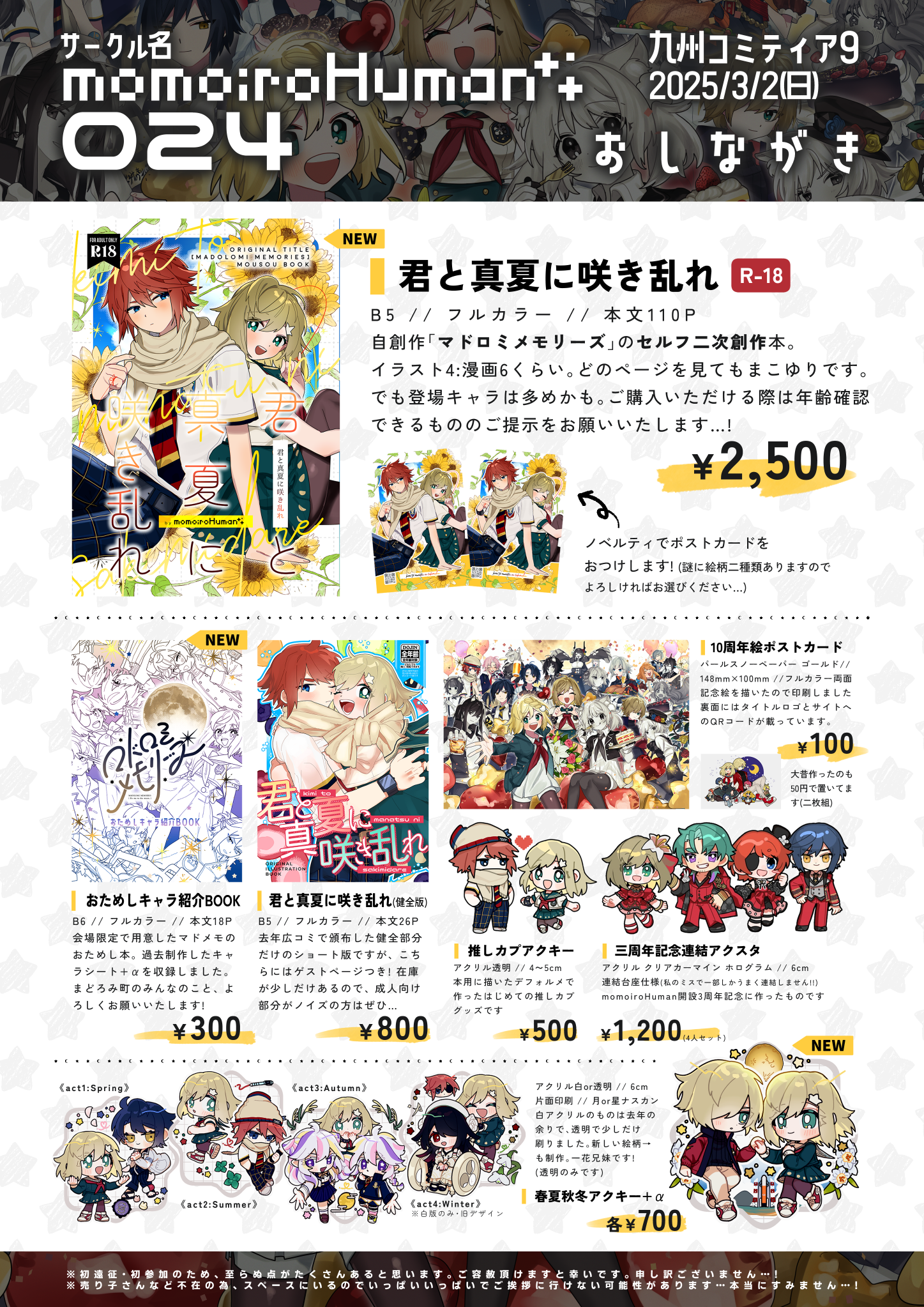 九州コミティア9でスペース頂きました、初参加、初遠征、初コミティアサークル参加です!! 気が早いですがお品書きも作っておきました!
