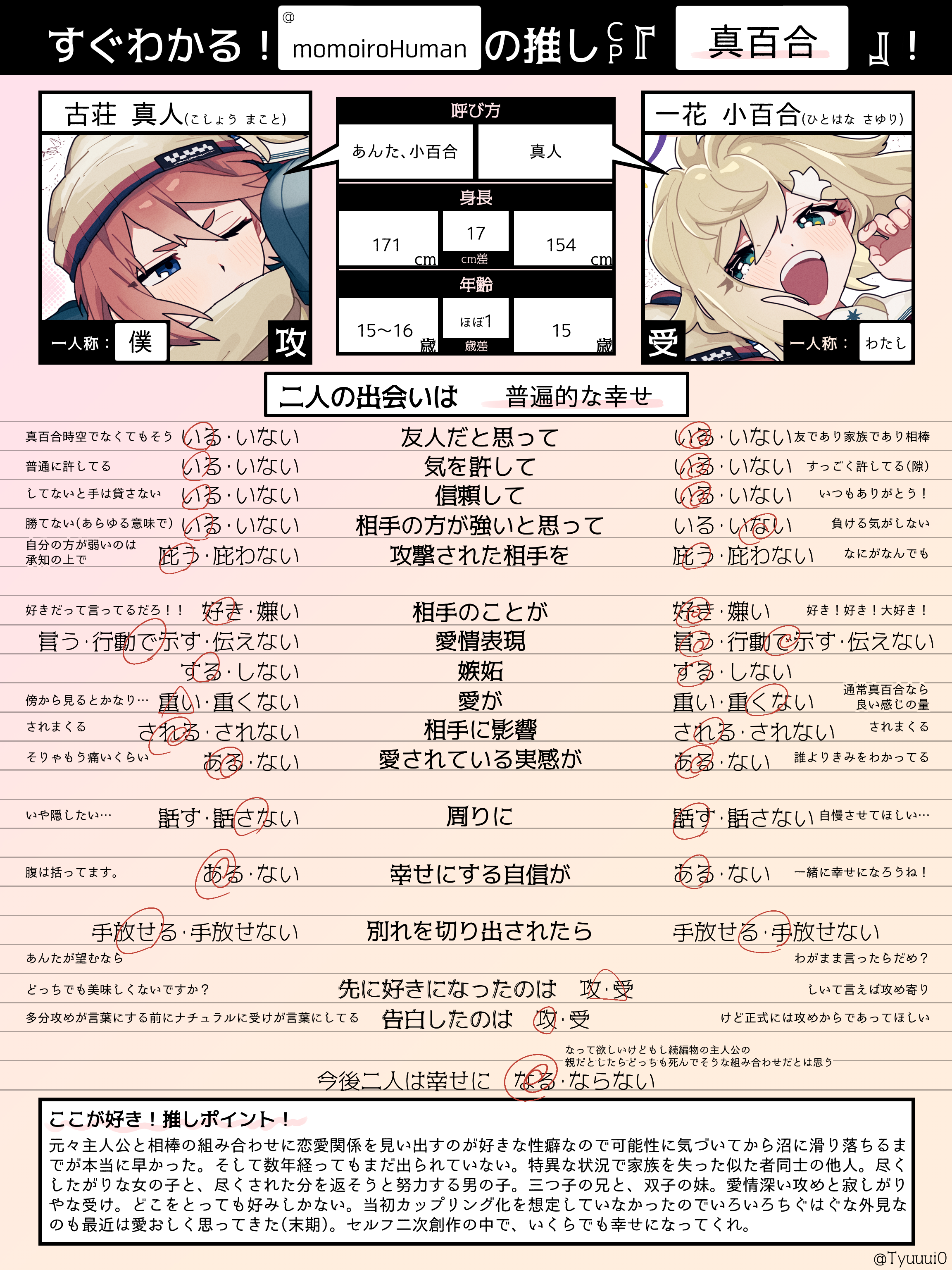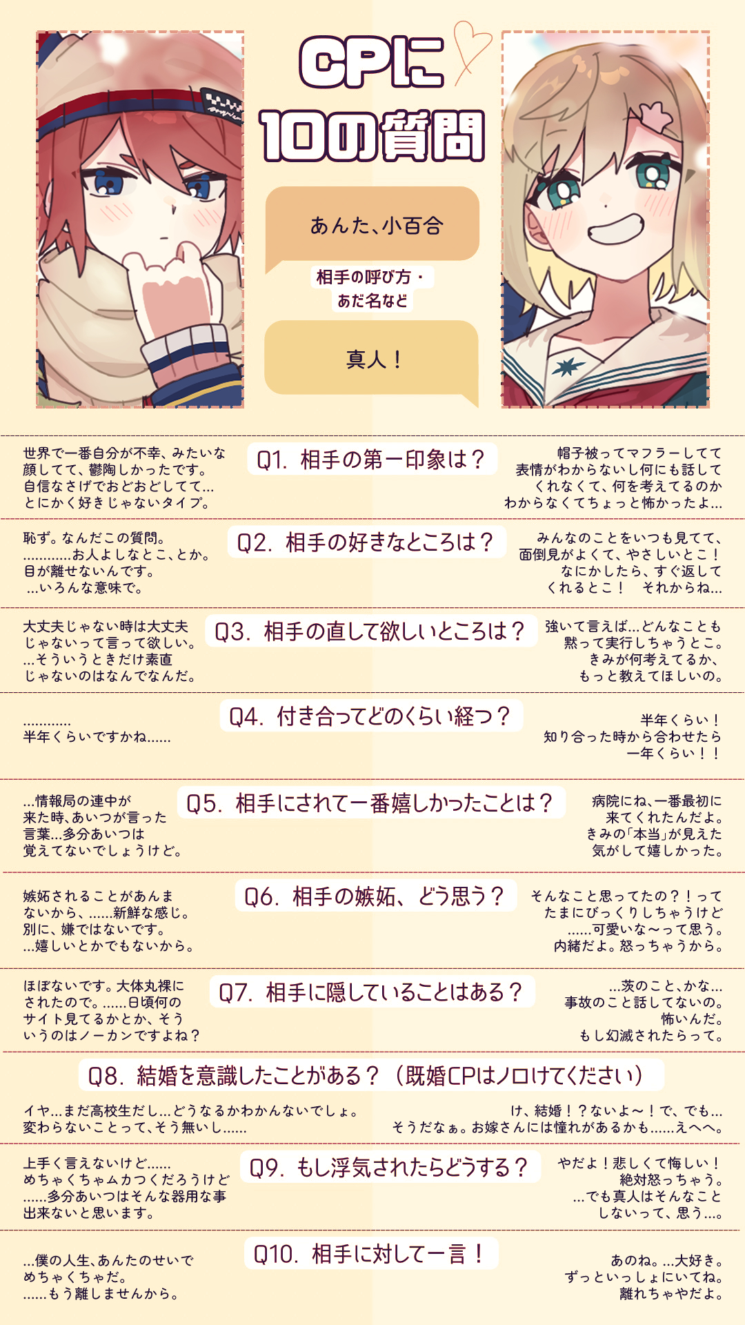 2分でわかるやつ、二年ぶりにやりなおした #マドメモCP 深まっている、真百合が(一年ずっと描いてたら多少はそうなるか) 追記:やりたい放題やっちゃった 何気に誕生日とか初出し 2025.03.11 まどろみ町回覧板