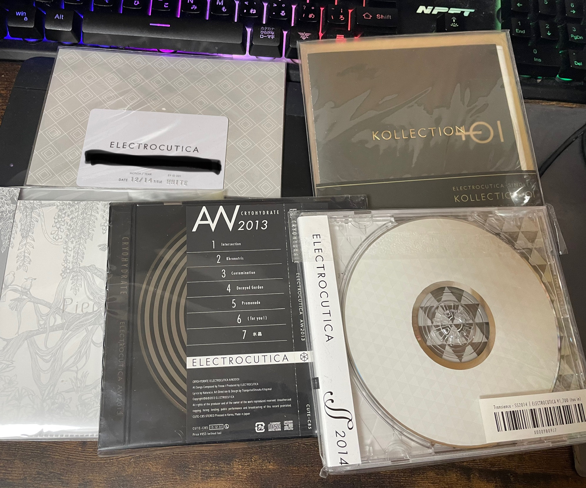 あとうちにはPiece of Cipher(旧)、Hysteresis、REVERSUS、RE:CYCLE、XENOVERSE(pre)、SWANSONG、INVITATION、L’écrin -Saphir-、CYGNUS.CC SS2017があった? と思う CRYSTALLOIDはオムニバス?にあまり惹かれず…で、DYE SYNTHESIS -extended-も原曲そこまで詳しくなくて見逃した、CRONIQUEⅠはDLカード形式だったから(ID “White”でのあれこれから勝手に苦手意識持ってて)見逃しちゃった(後から超後悔したよ…)