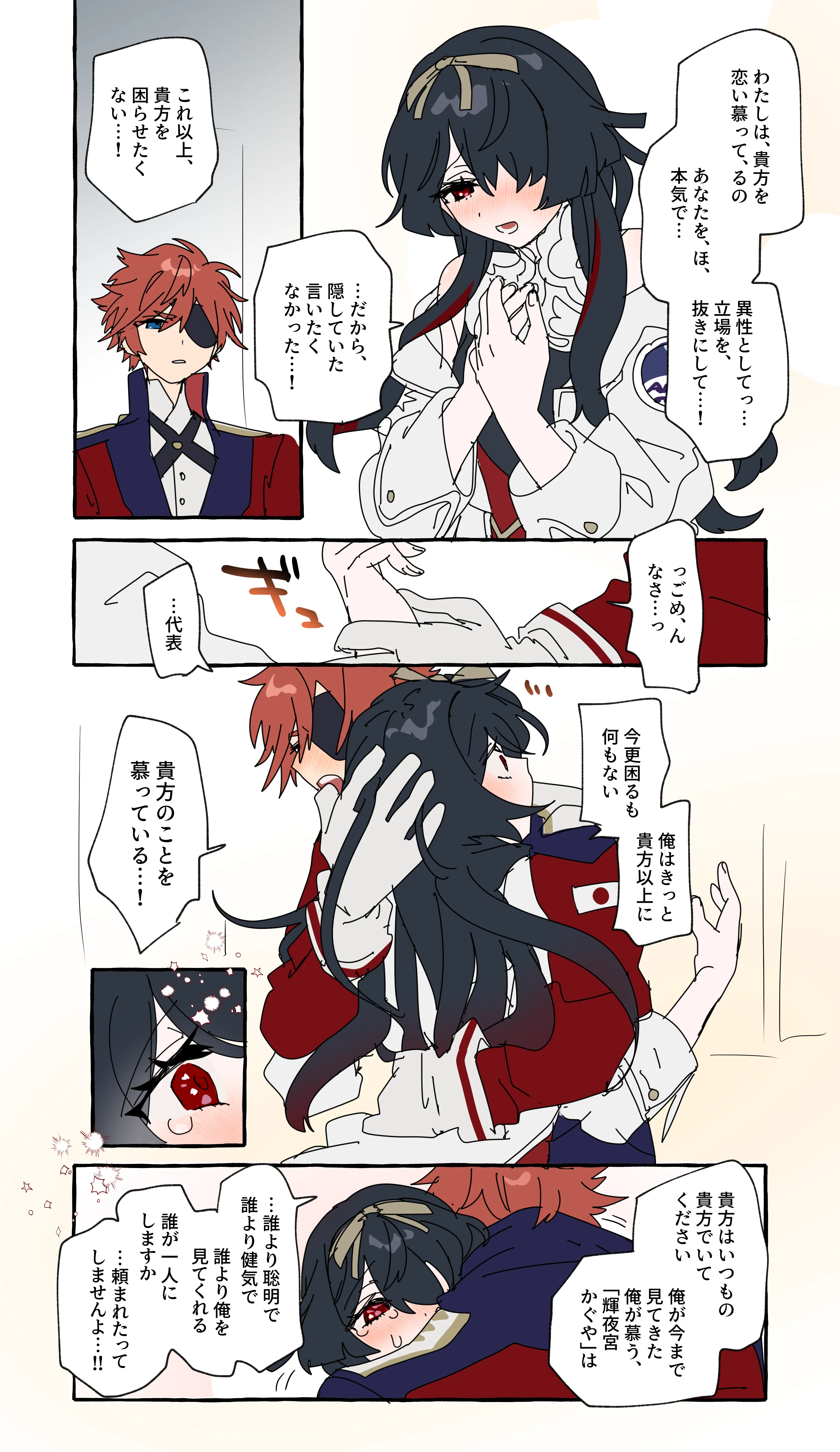 うれし~~~~~~~~~~~!!!!!!!!!!!!!! もうこれで私のエンジンが大暴走しました。先日までにいくつか自分用の様子見でうこかぐシチュ投稿のジャブ打ってましたが、絵にしました!!!! 本当にありがとうございます 数少ないですが載せます