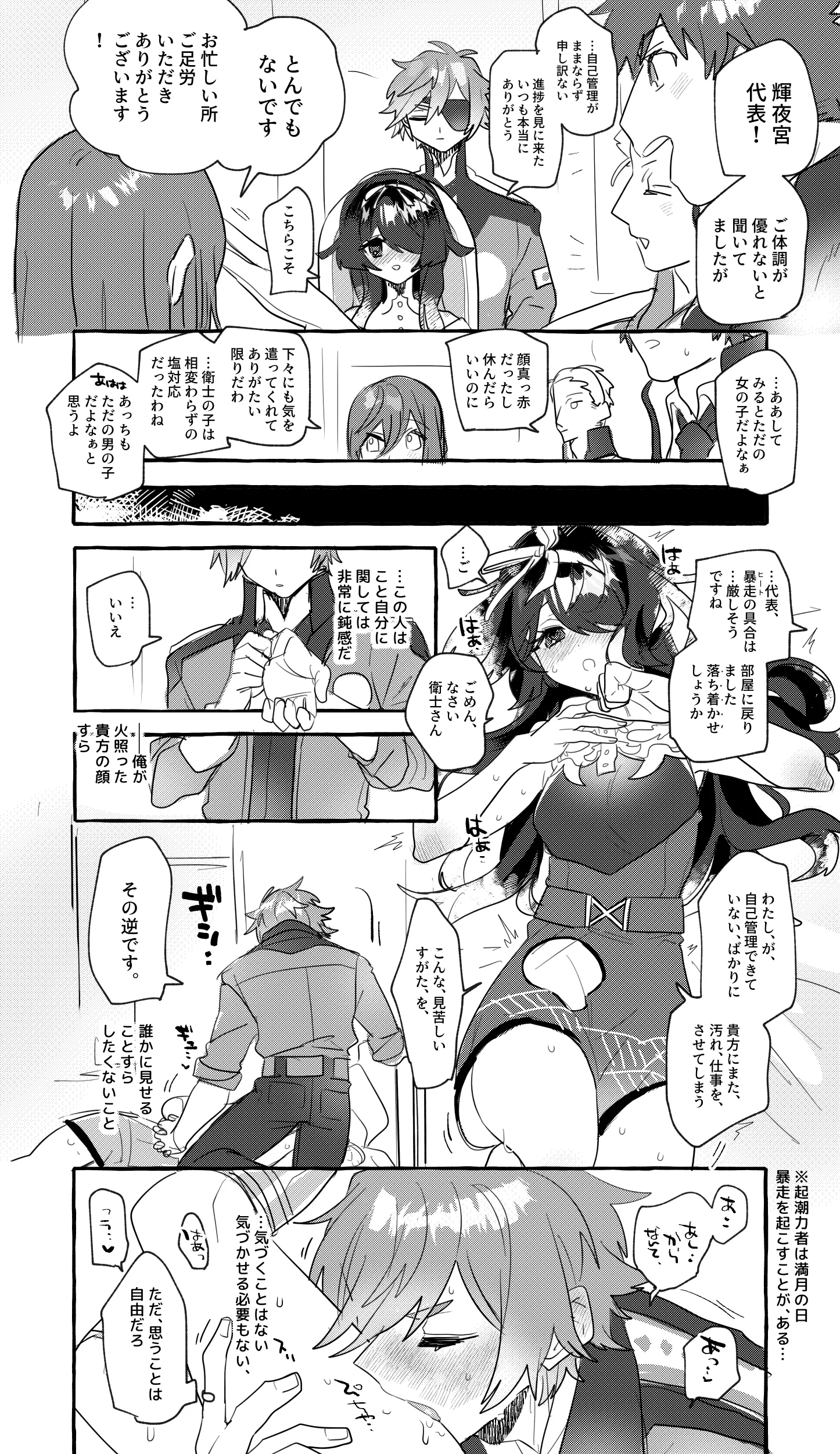 暴走設定あるんだから描かなきゃだよな~!!! と描きました!!!(潮汐力所持者は満月の夜、自分を抑えるものがおかしくなる設定です! 多分明確に初めて描いたのは君咲きでの小百合)かぐや、ヒートすごい恥じてそうで好きです(みんな恥じてるだろうけど・・・)どうすればいいかわからずいつも何とか耐えてたけどいまは衛士さんいるじゃん・・・となったらこういう関係もありかもとなっちゃいました。足を・・・舐めてるのは趣味です・・・見えないけど・・・てか、義足の付け根が絵によって違ってホンマすみません。膝上です。
