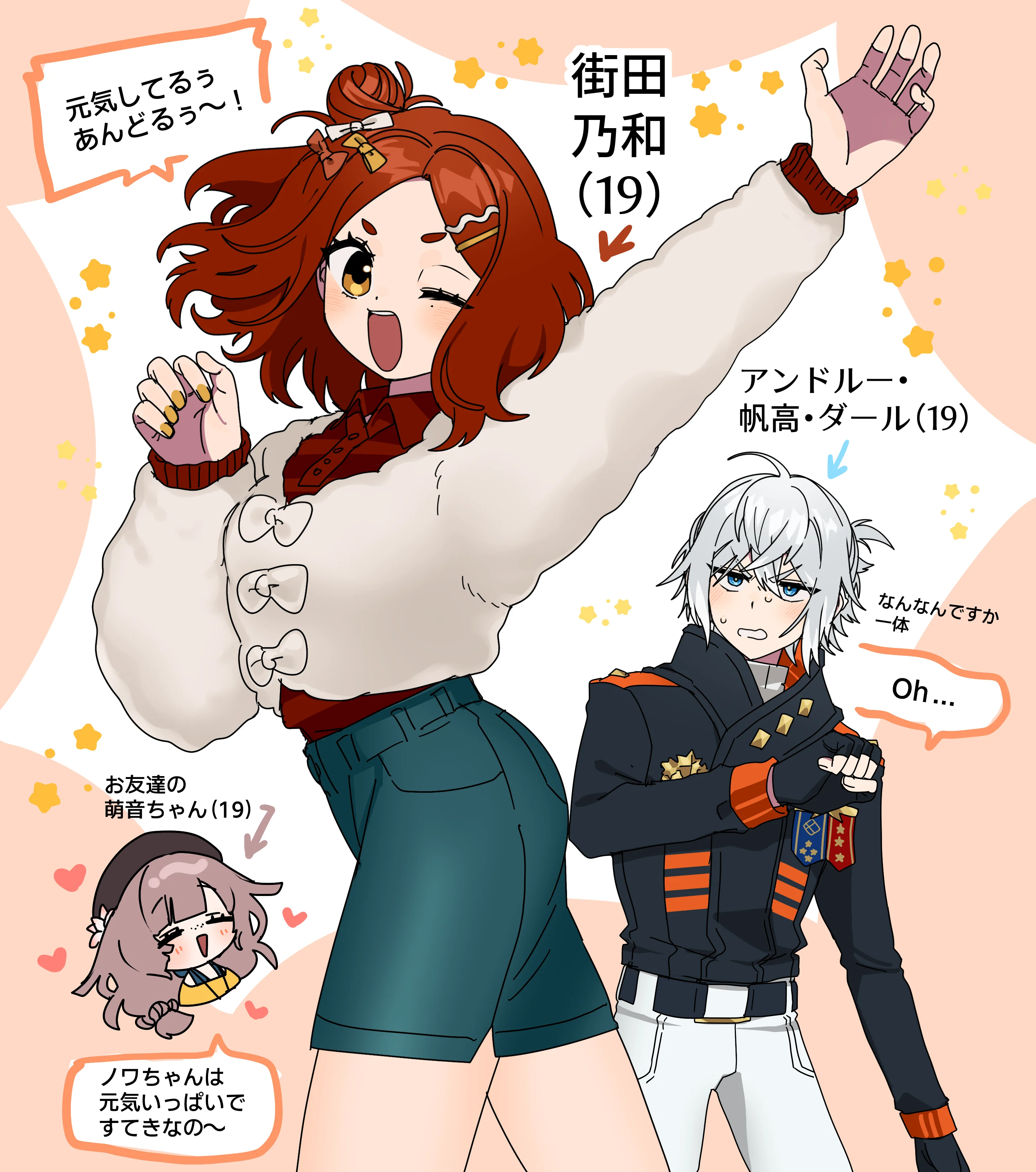 ノリが軽くやかましい感じで、一に対して百返します。思ったことをすぐ口にするタイプで、のんびりした萌音と相性の良い組み合わせです。