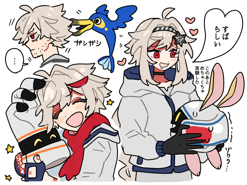 遊馬一族を描きました。左から肇(はじめ)、那由多(なゆた)、千歳(ちとせ)です。