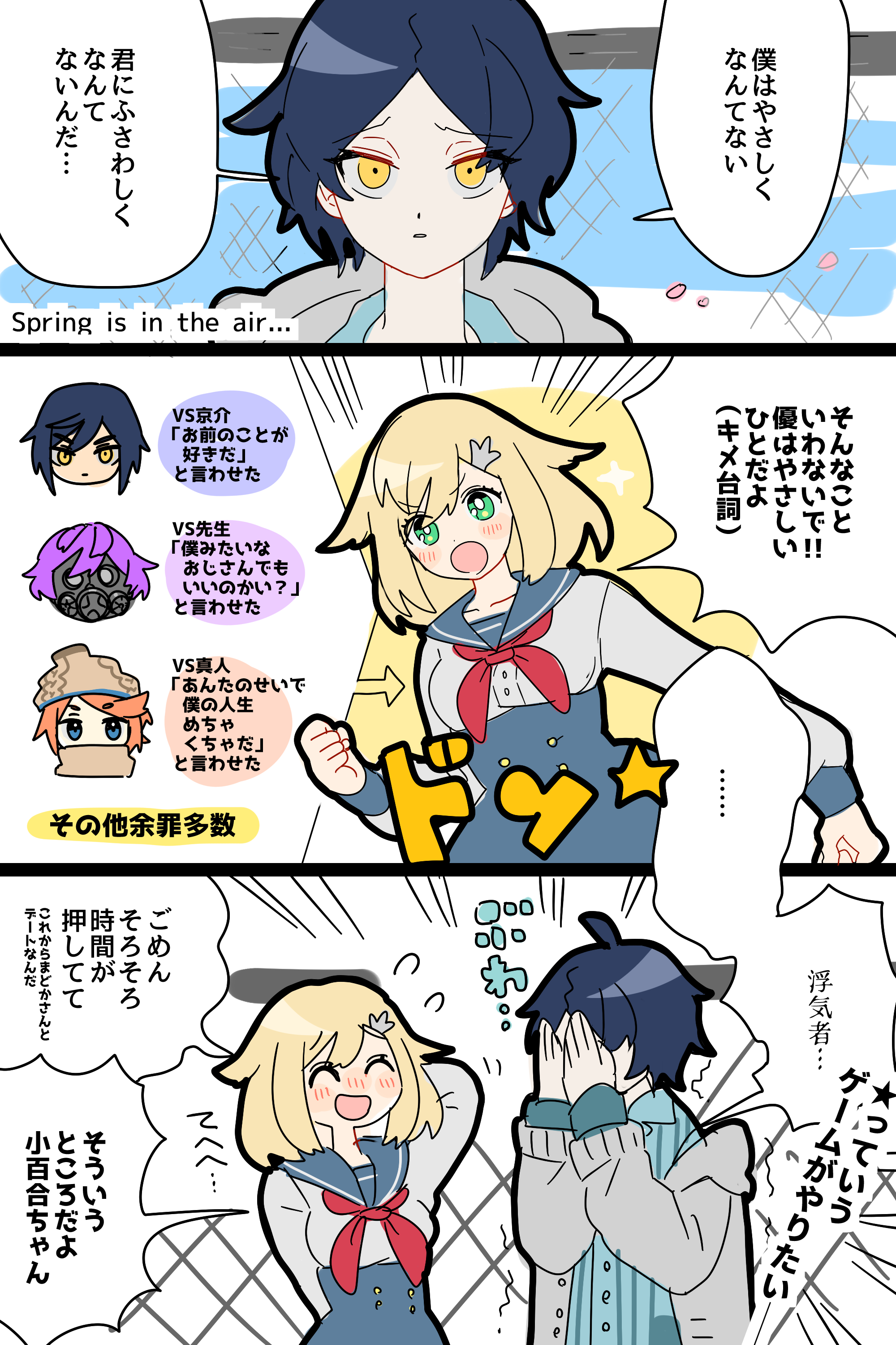 「Spring is in the air.(春めく)」や「Spring is here!(春が来た!)」は優くんの代名詞だと思っているので、代わりに何の言葉を入れようか迷いましたが、結果として「ワクワクスプリング」になりました。わくわく!(アーニャ)