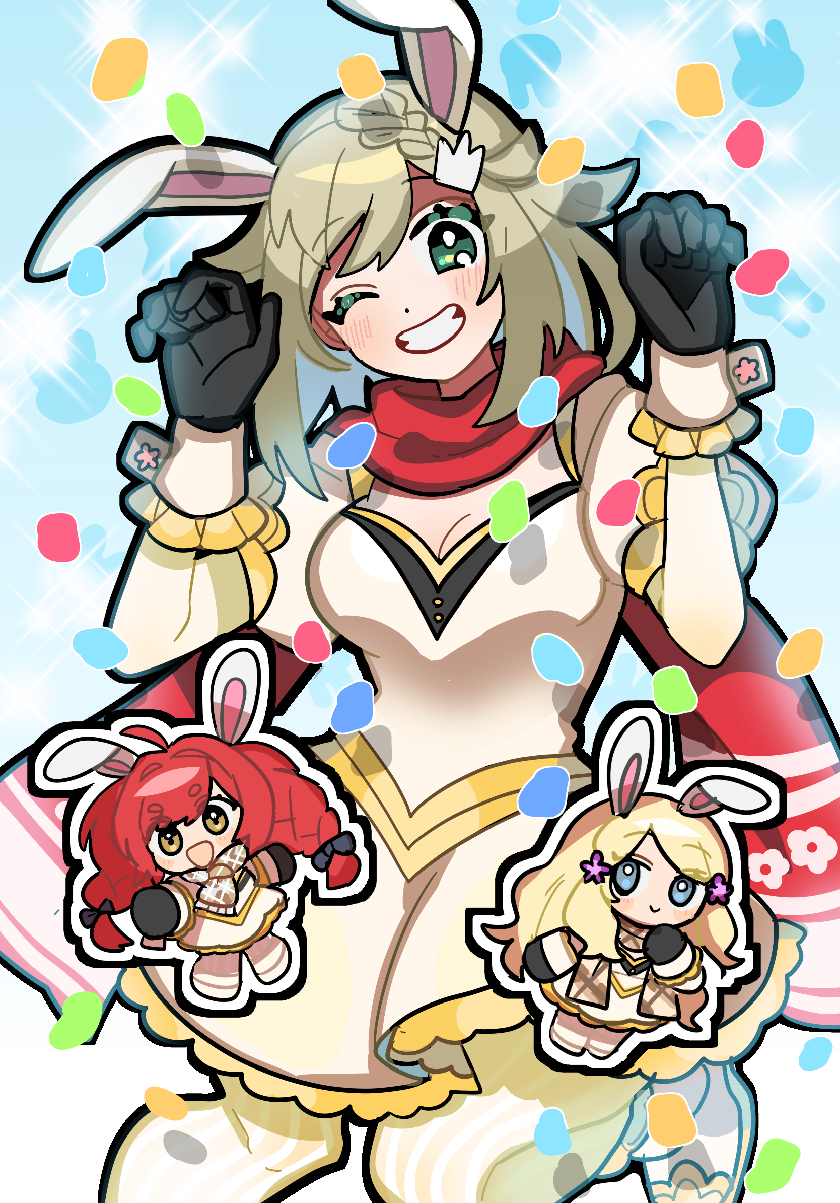マドロミメモリーズ バニーの日 だったそうなので描きました👯♀️ SWDのうさぎさんたち!露出は控えめ(冬が舞台の話なので…)ですが、かわいい衣装にできたと思ってます☺️SWD、着実に完成に向かってます〜、よろしくお願い致します! 2023.08.03 マドロミメモリーズ