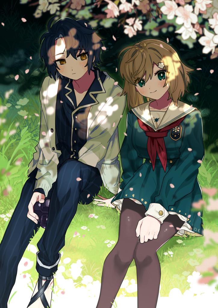 絵は仕事や依頼の合間にだらだら描いていましたが、今日がさくらの日、と聞いたので間に合わせました。pixivに投稿したんですが、花びら舞うのも出来て嬉しい! 優、外見にはほとんど桜とか春っぽさはないかなと勝手に思っているんですが、でもとても桜が似合う子にできたな…と思っています。青色だからかな。優は桜の儚さを、京介は桜の凛とした感じを、それぞれリスペクトしています。