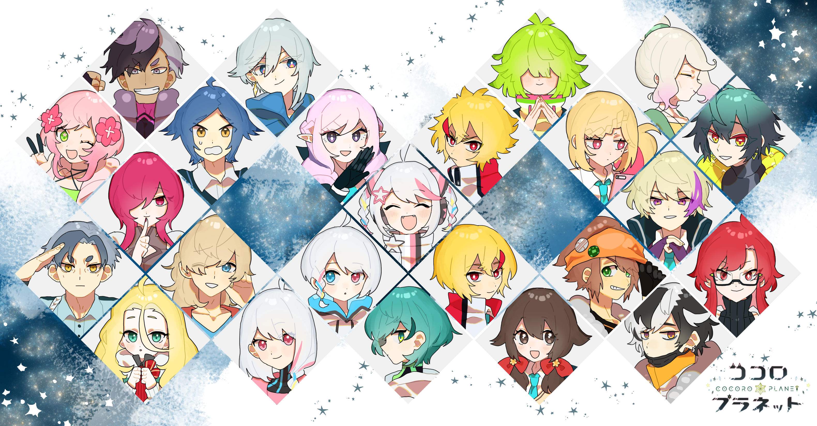 「ココロプラネット」より主人公と攻略対象のみんなたちです。私の推しカップリングはロクナナ、ナナシオ、シロナナあたりです。【おまけ】これは2021年のバレンタインイラストが載った記事です。拍手たくさんあ...